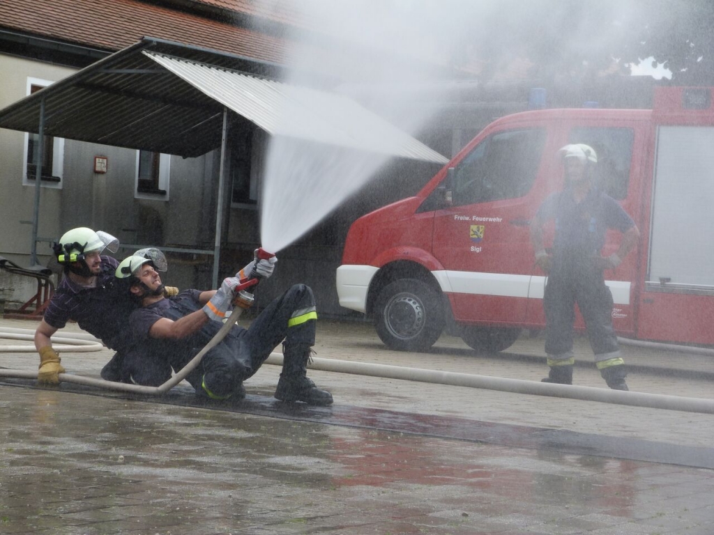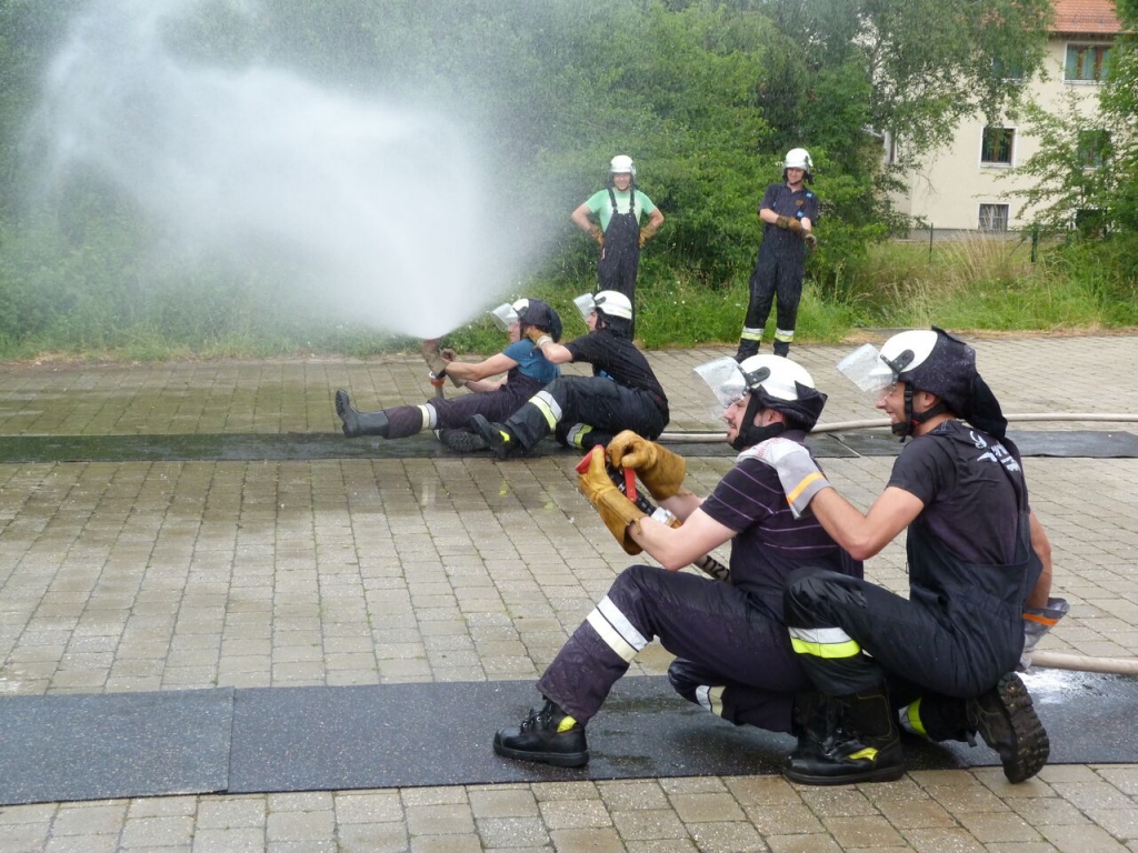 Das Strahlrohrtraining findet im Übungshof der Feuerwehr Vilseck statt.