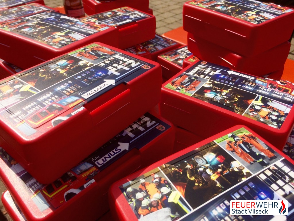 Als Dank für die rege Teilnahme bekamen die Kinder heuer zum ersten Mal ein Geschenk: eine Brotzeitbox mit einem Motiv der Feuerwehr Vilseck. So bleibt der Tag bei der Feuerwehr auch während der Kindergarten- oder Schulzeit in guter Erinnerung!