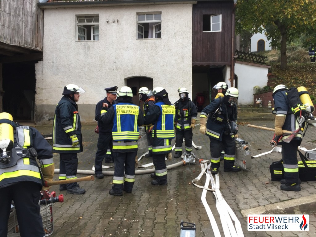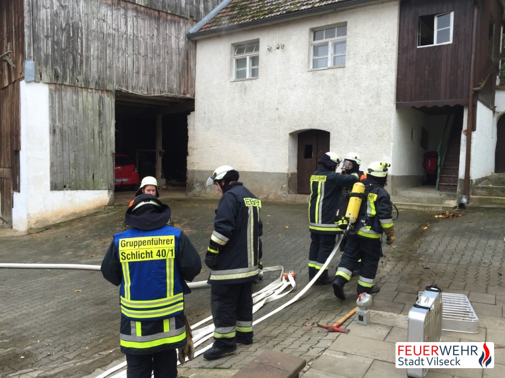 Umgehend wurde durch die Kräfte der Feuerwehr Schönlind ein Löschangriff von außen vorbereitet und durchgeführt. Durch die nachrückenden Kräfte der Feuerwehr Vilseck und Schlicht konnten prompt Atemschutzgeräteträger in das Brandobjekt gesendet werden.
