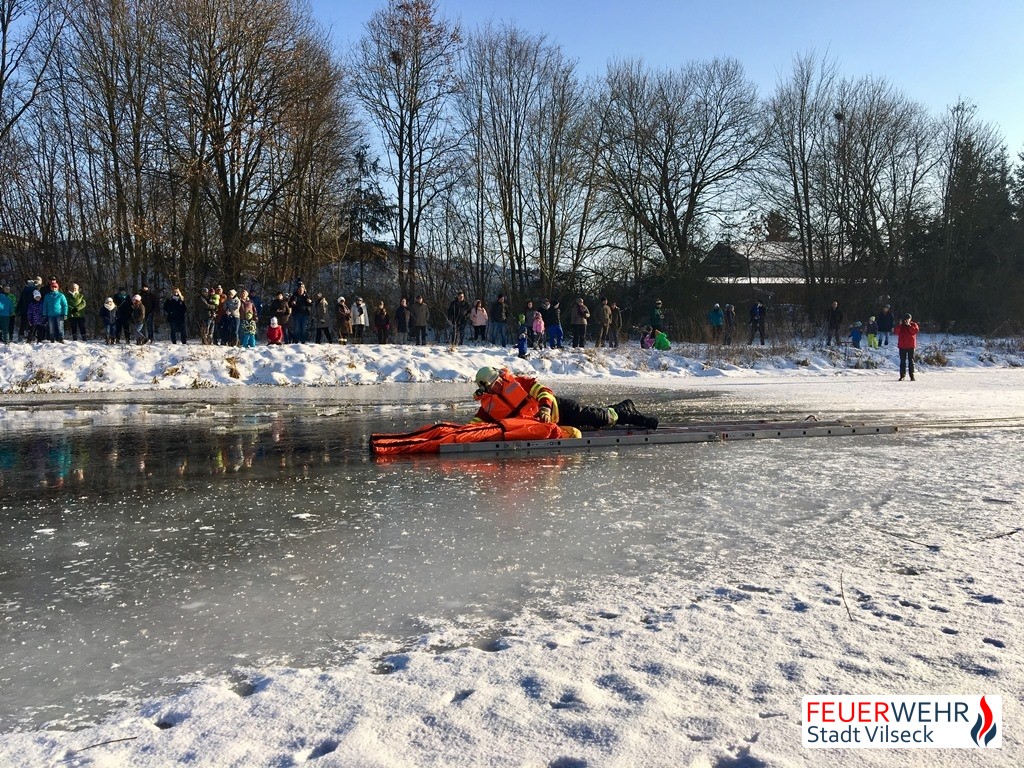 Gerade im Winter passiert es leider häufig, dass sich vor allem Kinder und Jugendliche auf noch zu dünnes Eis begeben und anschließend in dieses einbrechen. Um in diesem Fall besonnen und sicher handeln zu können, folgte die Feuerwehr Vilseck der Einladung der Wasserwacht Vilseck bei einer Eisrettungsübung teilzunehmen.