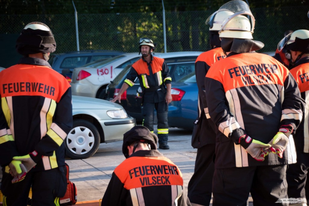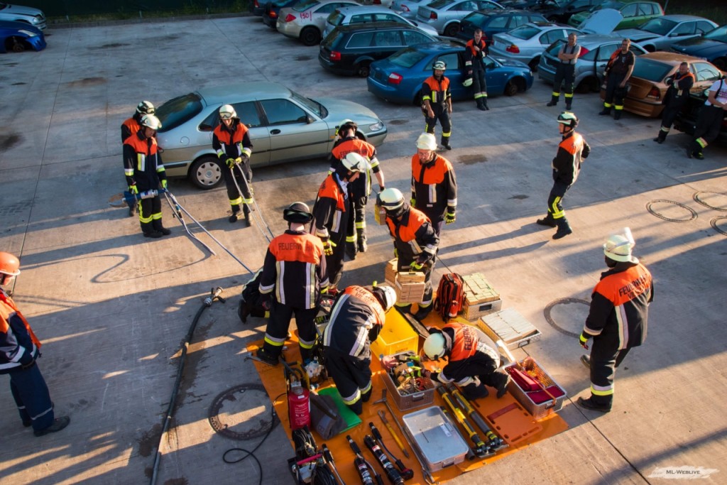 Nachdem am Dienstag, den 18. Juni 2019 die theoretischen Grundlagen und Besonderheiten durch KBI Christof Strobl behandelt wurden, stand zwei Wochen später, am Dienstag, den 02. Juli 2019 der erste praktische THL- Termin auf dem Plan. Da der Übungshof am Gerätehaus Vilseck aktuell in der Umbauphase ist, hatten sich die Ausbilder eine besondere Übungslocation ausgesucht: der Schrottplatz des Auto Skills Centers im US Südlager.