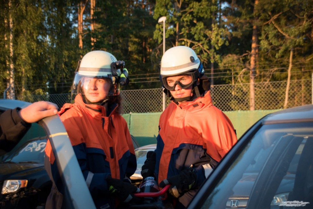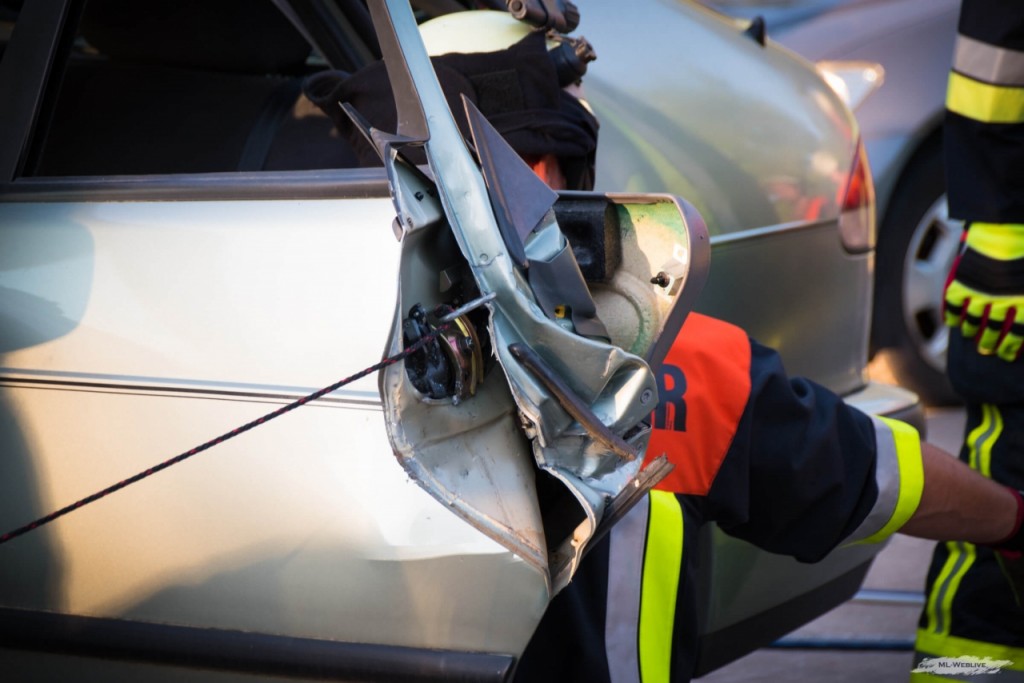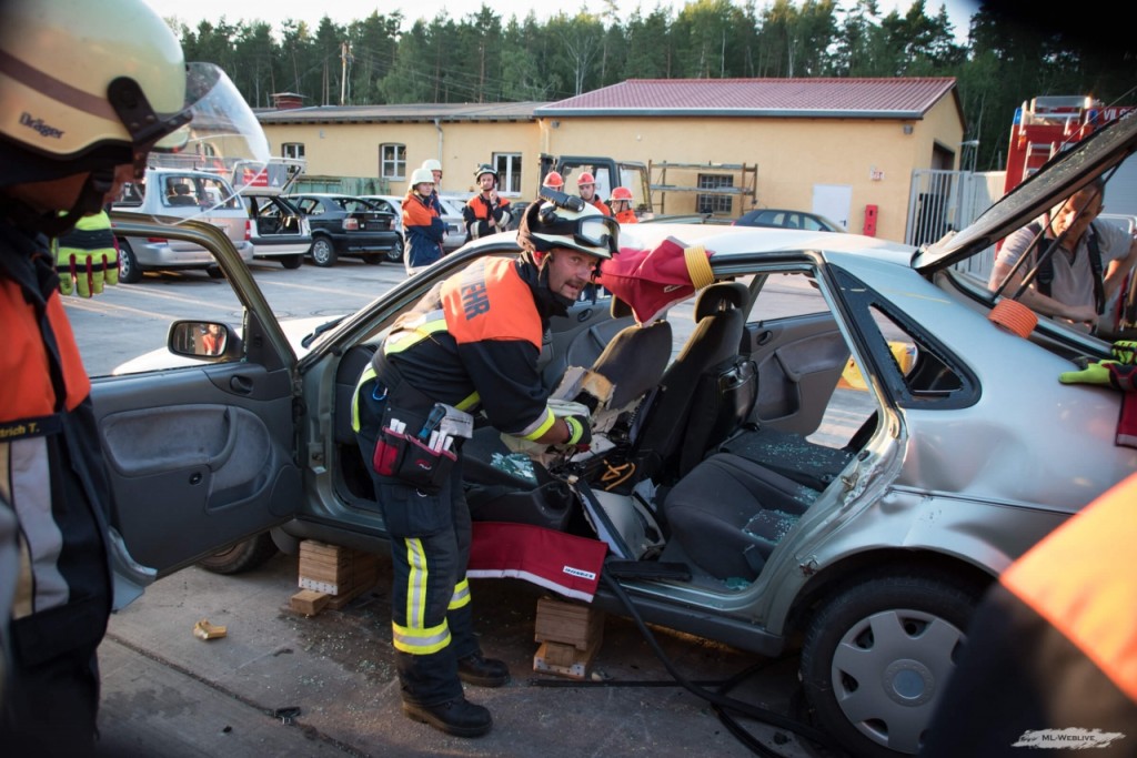 Während der Erkundung durch den Einheitsführer wurde durch die restlichen Kräfte die Geräteablage aufgebaut und durch die Ausbilder auf die einzelnen Bestandteile eingegangen. Nach dem Unterbau des Fahrzeugs und der Sicherung gegen ein ungewolltes Wegrollen konnte ein innerer Retter in das Auto vordringen und mit einer Patientenbetreuung beginnen. Währenddessen konnte mit Hilfe eines speziellen Werkzeugs nach Airbags gesucht und die Scheiben entfernt werden. In einer kurzen Absprache wurde entschieden, die Person mittels einer „großen Seitenöffnung“ zu retten, wozu die Türe hinter dem Fahrer geöffnet und an der B- Säule geschnitten und mit einem Rettungszylinder aufgedrückt wurde.