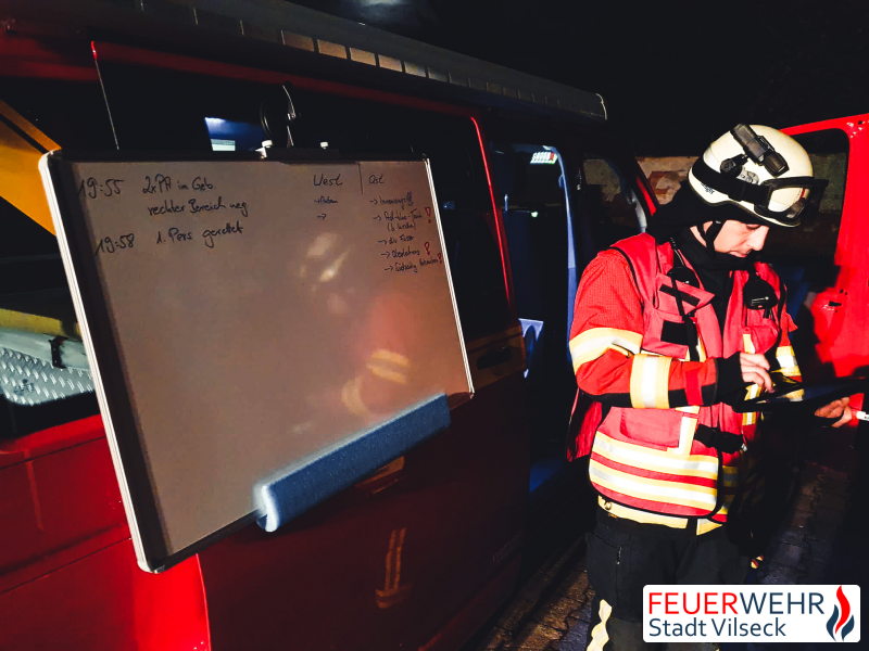 Um einen guten Überblick über die befohlenen Maßnahmen und deren Erfolg zu haben und die Teileinheitskräfte entsprechend leiten zu können, wurde der Übungseinsatz durch den Zugführer aus einem Führungsfahrzeug geleitet.