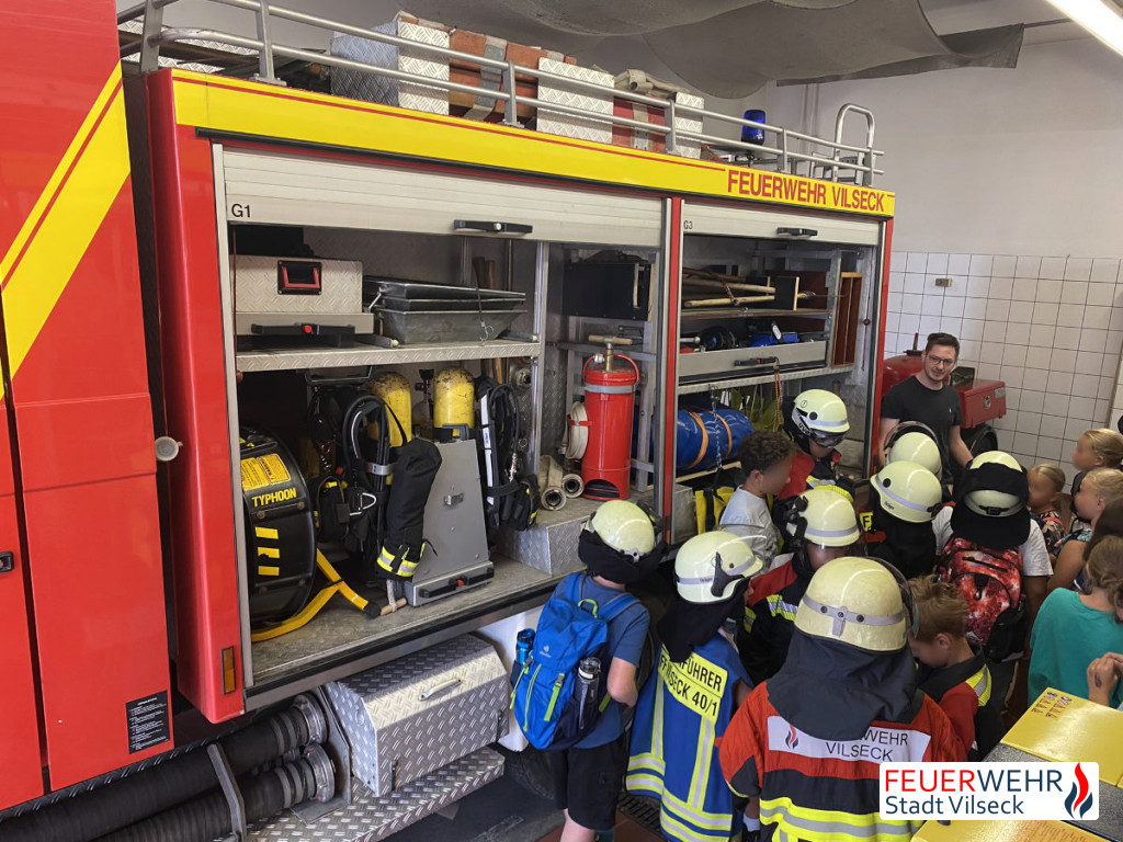 Beim Besuch der Feuerwehr Vilseck konnten die Schülerinnen und Schüler der Klasse 3a der Grund- und Mittelschule Vilseck am Dienstag, dem 26.07.2022, zwei spannende Unterrichtsstunden erleben.