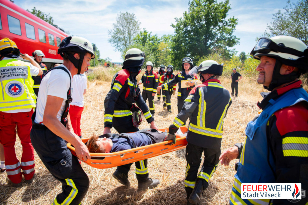 Beim Eintreffen der ersten Kräfte der Feuerwehr Stadt Vilseck musste zur Erkundung eine größere Fläche an Ackerland überquert werden, um zum Gleisbereich zu gelangen. Nachdem die Integrierten Leitstelle meldete, dass ein Sperrfax eingegangen war, konnte die Bahnanlage sicher betreten werden. Die Türen mussten manuell geöffnet werden.
