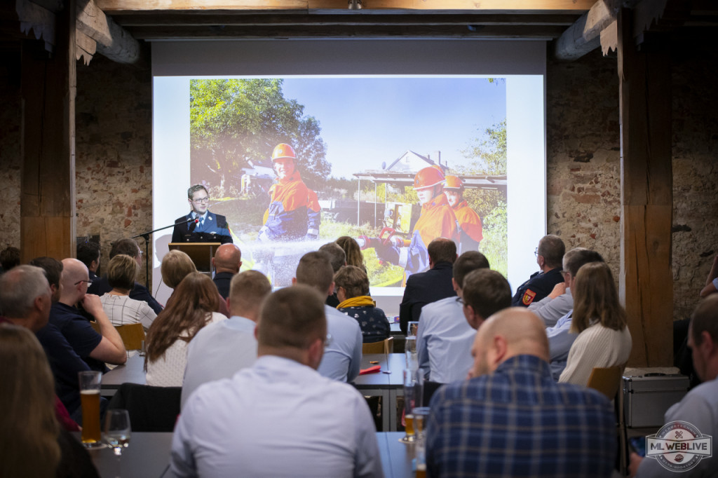 Kommandant Lothar Hasenstab erläuterte das Geschehen in der aktiven Wehr und zeigte dazu entsprechende Bilder und Videos. „Von den 105 Einsätzen bisher seien unter anderem 13 Brände und 81 Technische Hilfeleistungen zu verzeichnen, wobei der Solarpark-Brand in Hohenzant als besonders erwähnenswert gilt“, so Hasenstab. Leider sei bei einem Verkehrsunfall, zu dem man gerufen wurde, auch eine Personen zu Tode gekommen. „Der in Vilseck stationierte Versorgungs-LKW des Freistaats Bayern war im März mit zwei Fahrern aus Vilseck für einen Ukraine-Hilfstransport im Einsatz.“ Auch der Übungstag „Bahnunfall“, der am heißesten Tag des Jahres stattgefunden hatte, sei wichtig und aufschlussreich gewesen.