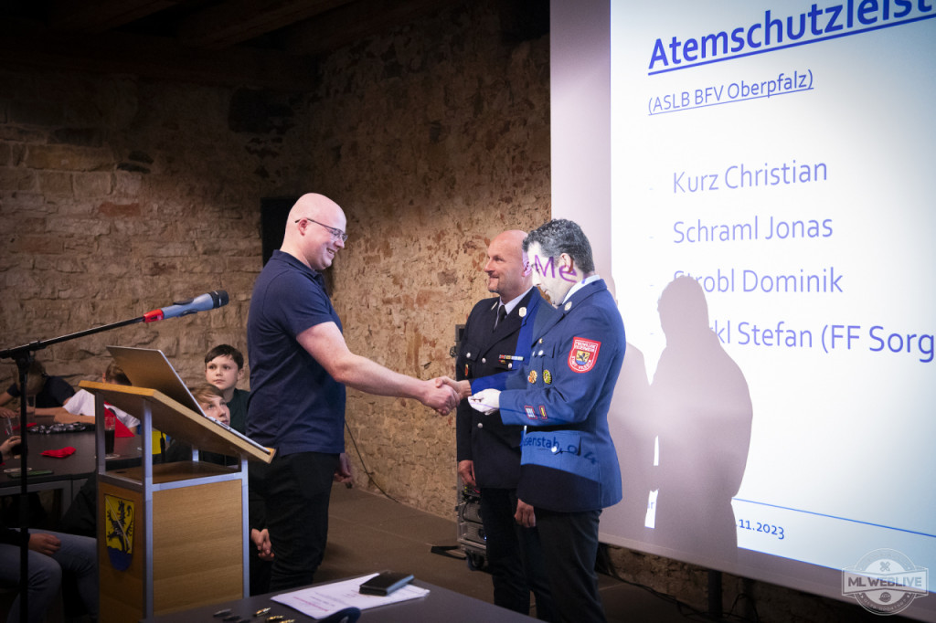 Mit der Entwicklung der Alarm-App „Emily“ durch das Webteam Niklas und Andreas Obermeier habe die Wehr einen hohen IT-Standard erreicht. Die entsprechenden Tablets dazu seien gespendet worden. „Auch ein digitaler Hydrantenplan wurde erstellt, für dessen Erfassung und Pflege die sieben Ortsfeuerwehren zuständig sind,“ führte der Kommandant aus. Die erfolgreichen Teilnehmer an Fortbildungen, Lehrgängen und Leistungsabzeichen erhielten die entsprechenden Auszeichnungen. Auch zahlreiche Beförderungen wurden ausgesprochen.