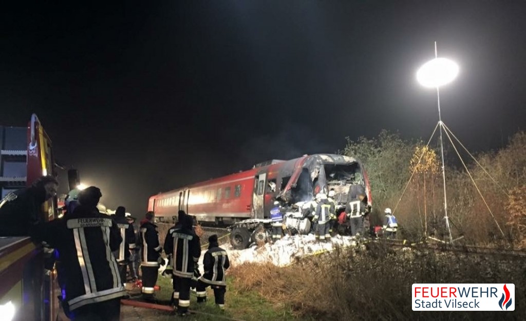 Zu einem nahezu identischen Zugunfall im eigenen Gemeindebereich wurde die Feuerwehr Vilseck vor 14 Jahren alarmiert. Damals kamen bei diesem Zugunglück 3 Menschen um ihr Leben, 23 Personen wurden verletzt. Die ausführliche Einsatzdokumentation kann hier nachgelesen werden.
