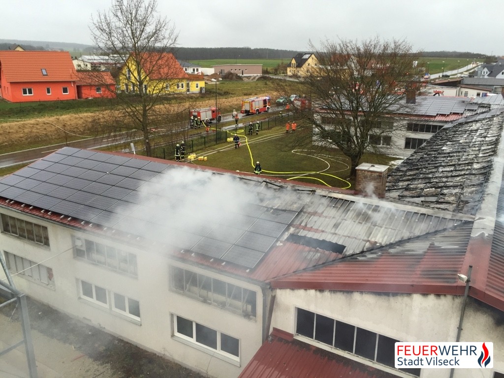 Da sich das Feuer rasch über die Dachisolierung auf der ca. 70m langen Halle ausbreiten konnte, es zu einer massiven Rauchentwicklung kam und der weitere Einsatzverlauf nicht absehbar war, wurden im weiteren Einsatzverlauf die Feuerwehren Hahnbach (Atemschutz), Sulzbach (Drehleiter) , Amberg (AB- Atemschutz) und die Werkfeuerwehr der US Army (Drehleiter) nachalarmiert.
