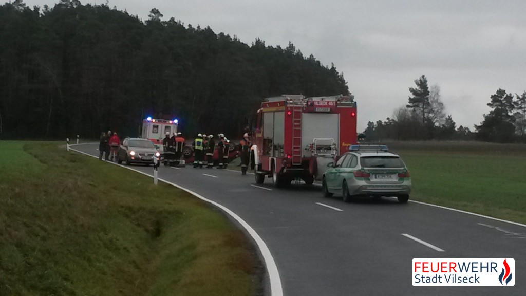 Am Mittwoch, den 02. Dezember 2015 wurde die Feuerwehr Vilseck zusammen mit der Feuerwehr Ebersbach um 11.00 Uhr zu einem Verkehrsunfall mit einem überschlagenen PKW auf die ST 2123 zwischen Ebersbach und Kleinschönbrunn alarmiert.