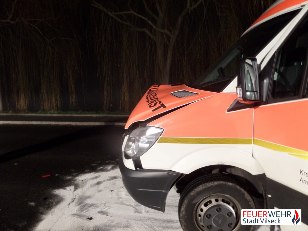 Nach der Unfallaufnahme durch die Polizei konnte der RTW auf dem Vorhof der Fahrzeughalle zwischengeparkt werden und die Feuerwehr den Einsatz nach 1,5h beenden.