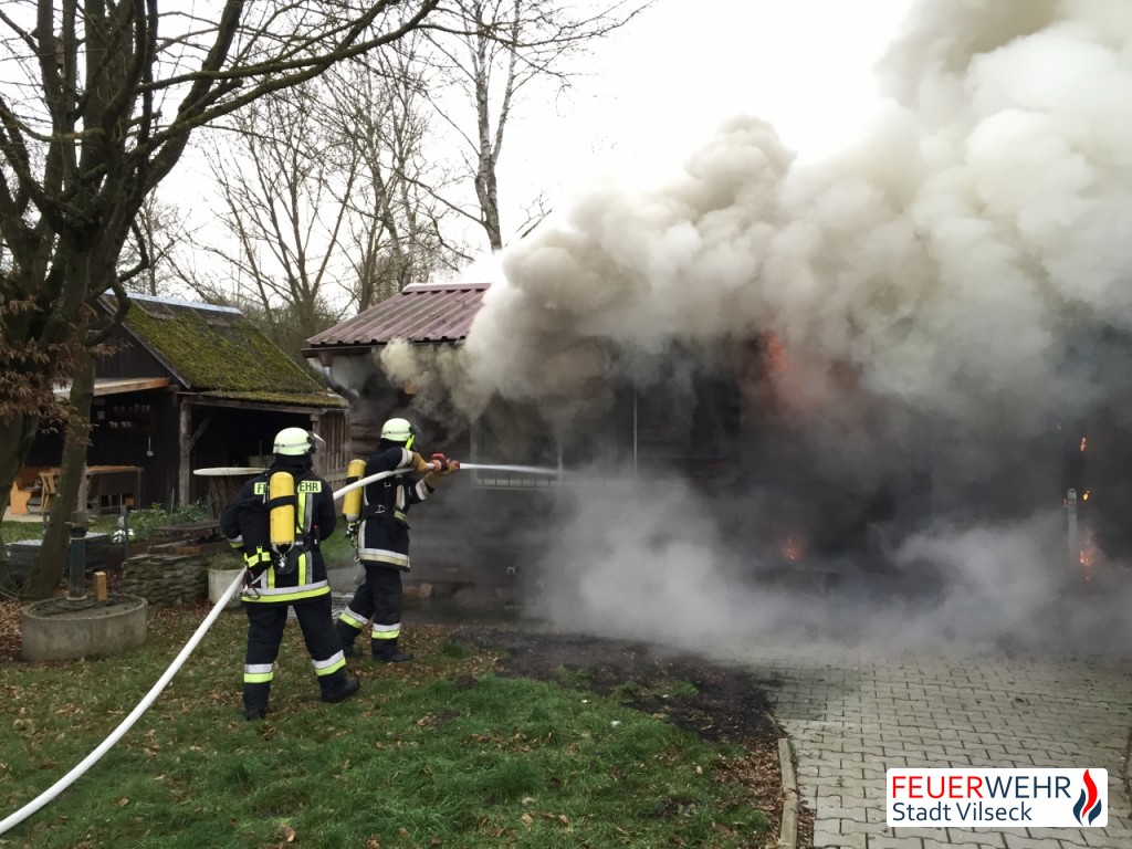 Die Feuerwehr Vilseck wurde am Sonntag, den 10. Januar 2016, um 14:45 Uhr zu einer brennenden Gartenhütte in den Altmühlweg alarmiert.