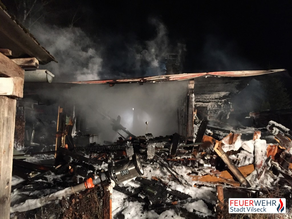 Update: Die Feuerwehr Vilseck konnte die Nachlöscharbeiten gegen 19.30 Uhr beenden und wieder in das Gerätehaus einrücken. Nach Wiederherstellung der Einsatzbereitschaft konnte der Einsatz nach knapp 5h beendet werden.