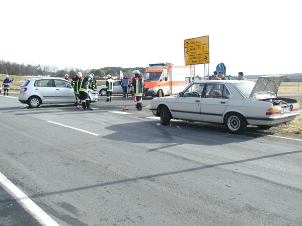 Mit der Meldung „Schwerer Verkehrsunfall Kreuzung Axtheid-Berg, eine Person eingeklemmt“ wurden am Sonntag, 19.02.2006 die Wehren Vilseck, Schlicht und Gressenwöhr um 13:40 alarmiert!