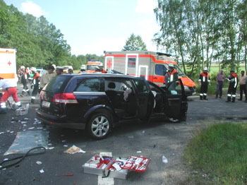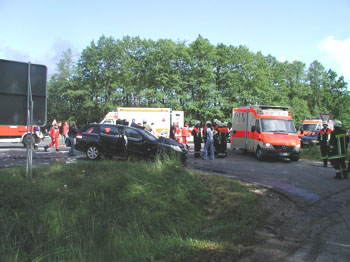eines schweren Verkehrsunfalls, „vermutlich zwei Personen eingeklemmt“,