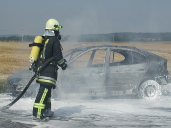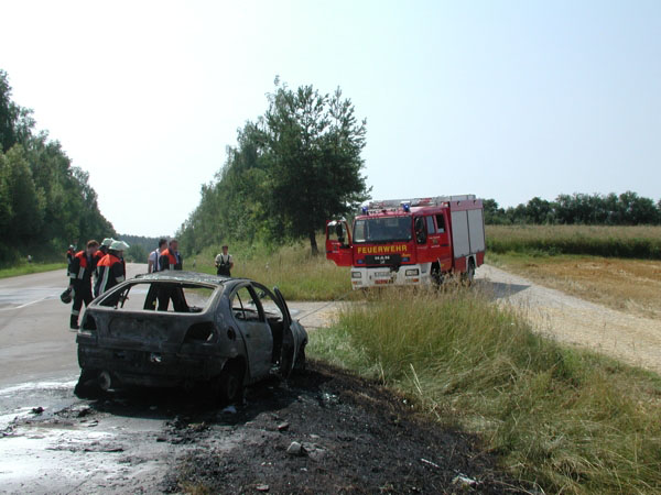 lag, stand das Fahrzeug bereits im Vollbrand, Personen befanden sich nicht mehr