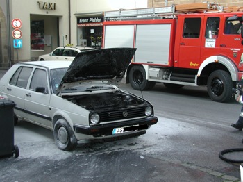 Am Donnerstag, 05. Oktober 2006, wurde die Vilsecker Wehr um 10.35 Uhr zu einem Fahrzeugbrand in der Vorstadt alarmiert. Bereits bei der Fahrt ins Feuerwehrhaus konnte man eine starke Rauchentwicklung zwischen dem Vogelturm und Hafnertor erkennen.