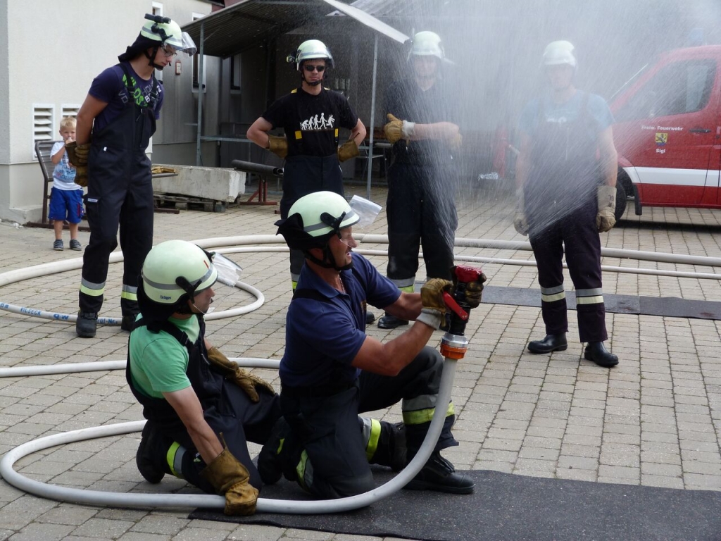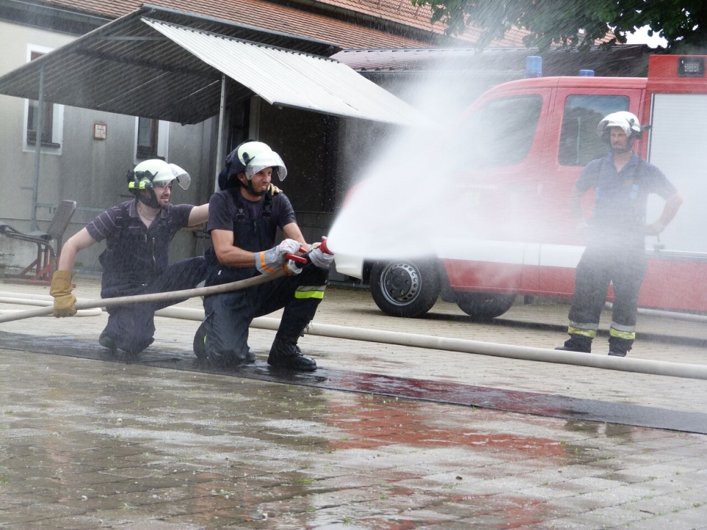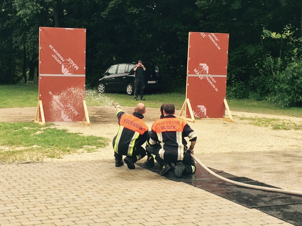 Das Strahlrohrtraining findet im Übungshof der Feuerwehr Vilseck statt.