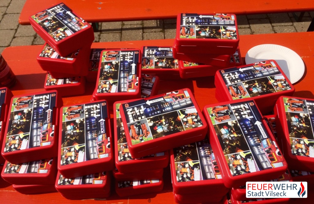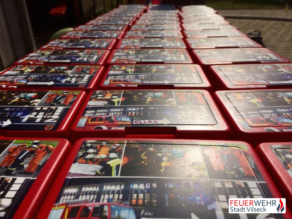 Als Dank für die rege Teilnahme bekamen die Kinder heuer zum ersten Mal ein Geschenk: eine Brotzeitbox mit einem Motiv der Feuerwehr Vilseck. So bleibt der Tag bei der Feuerwehr auch während der Kindergarten- oder Schulzeit in guter Erinnerung!
