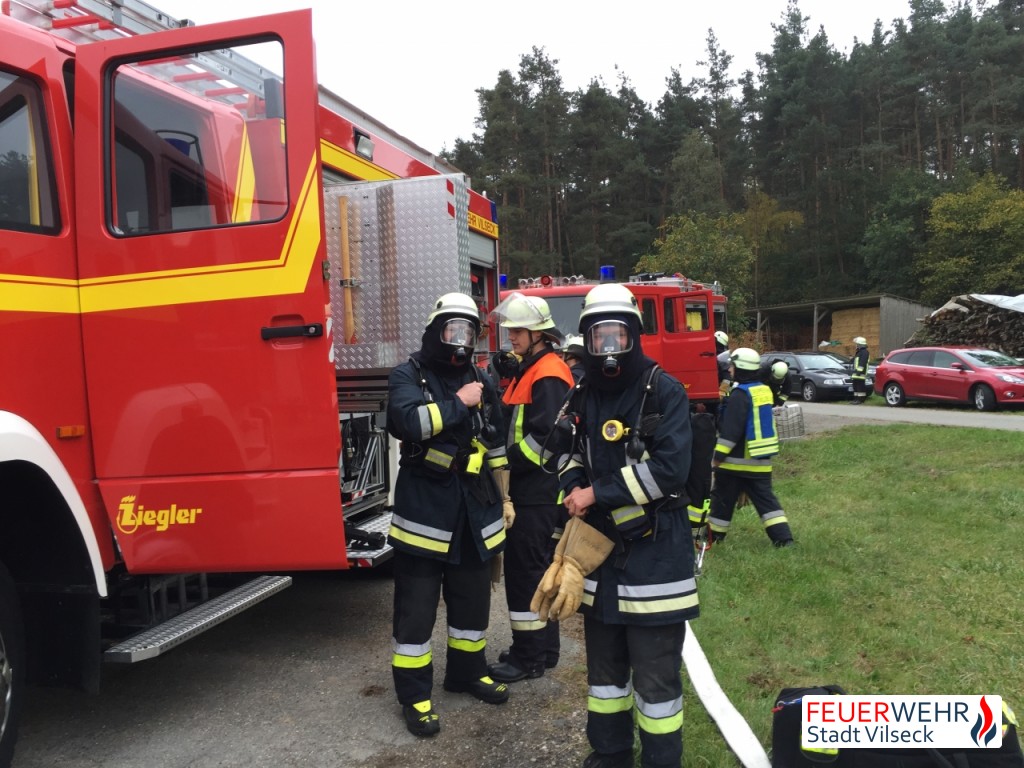 Umgehend wurde durch die Kräfte der Feuerwehr Schönlind ein Löschangriff von außen vorbereitet und durchgeführt. Durch die nachrückenden Kräfte der Feuerwehr Vilseck und Schlicht konnten prompt Atemschutzgeräteträger in das Brandobjekt gesendet werden.