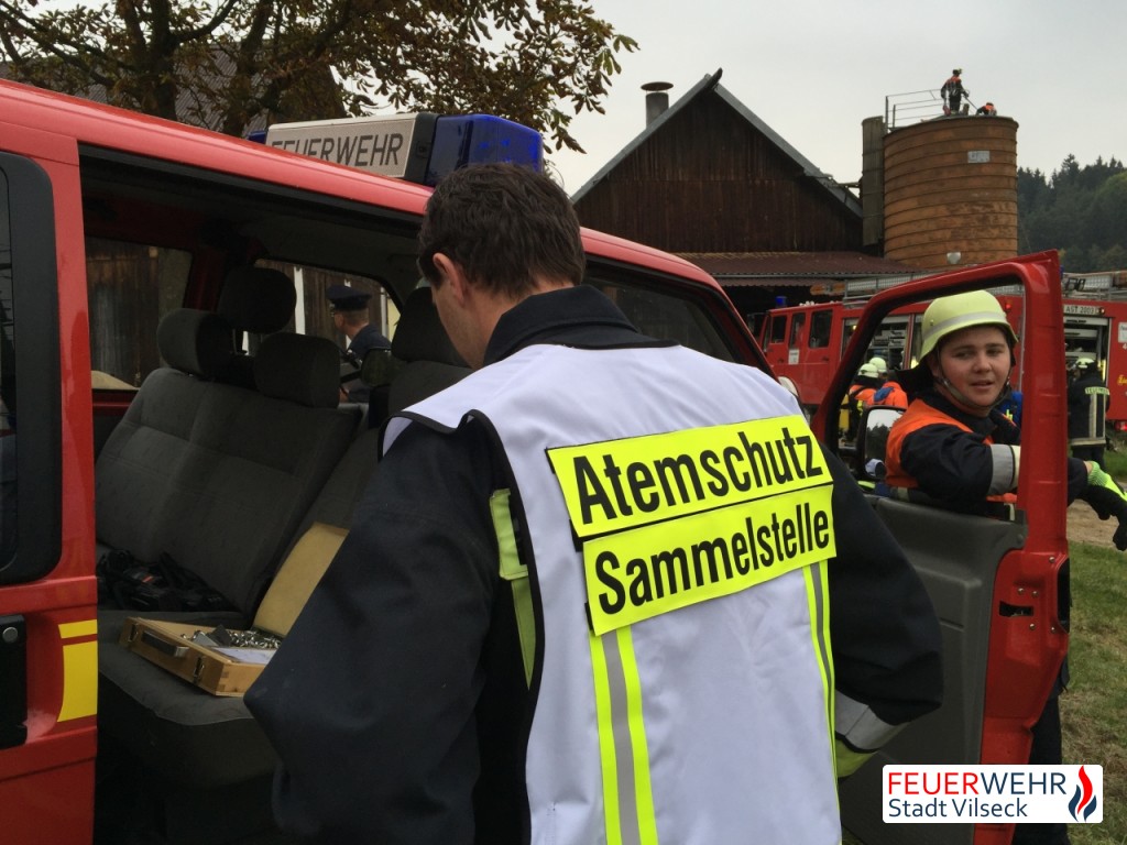 "Nach heftigem Unwetter, Blitzeinschlag in ein Nebengebäude eines landwirtschaftlichen Anwesens in Ödgodlricht. Personen werden vermisst." - so lautete das Übungsszenario, welchem sich die Kräfte der Feuerwehren Vilseck, Schlicht, Sorghof, Gressenwöhr, Sigl, Schönlind, Ebersbach, Weißenberg, Süß und Hahnbach stellen mussten.