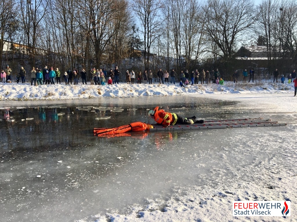 Gerade im Winter passiert es leider häufig, dass sich vor allem Kinder und Jugendliche auf noch zu dünnes Eis begeben und anschließend in dieses einbrechen. Um in diesem Fall besonnen und sicher handeln zu können, folgte die Feuerwehr Vilseck der Einladung der Wasserwacht Vilseck bei einer Eisrettungsübung teilzunehmen.