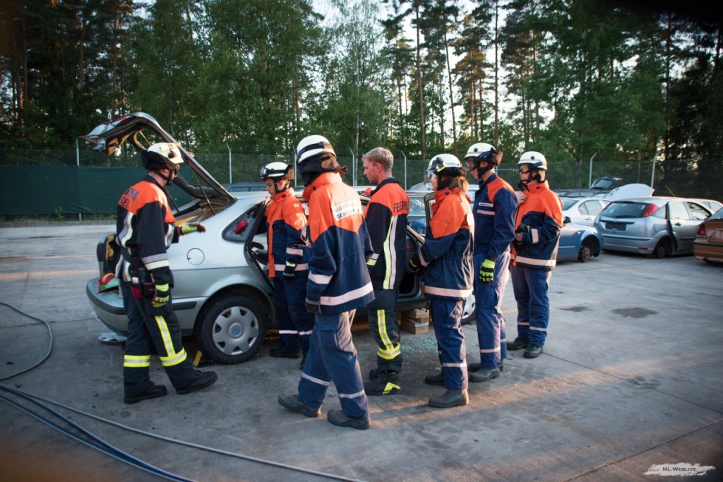 Nachdem am Dienstag, den 18. Juni 2019 die theoretischen Grundlagen und Besonderheiten durch KBI Christof Strobl behandelt wurden, stand zwei Wochen später, am Dienstag, den 02. Juli 2019 der erste praktische THL- Termin auf dem Plan. Da der Übungshof am Gerätehaus Vilseck aktuell in der Umbauphase ist, hatten sich die Ausbilder eine besondere Übungslocation ausgesucht: der Schrottplatz des Auto Skills Centers im US Südlager.