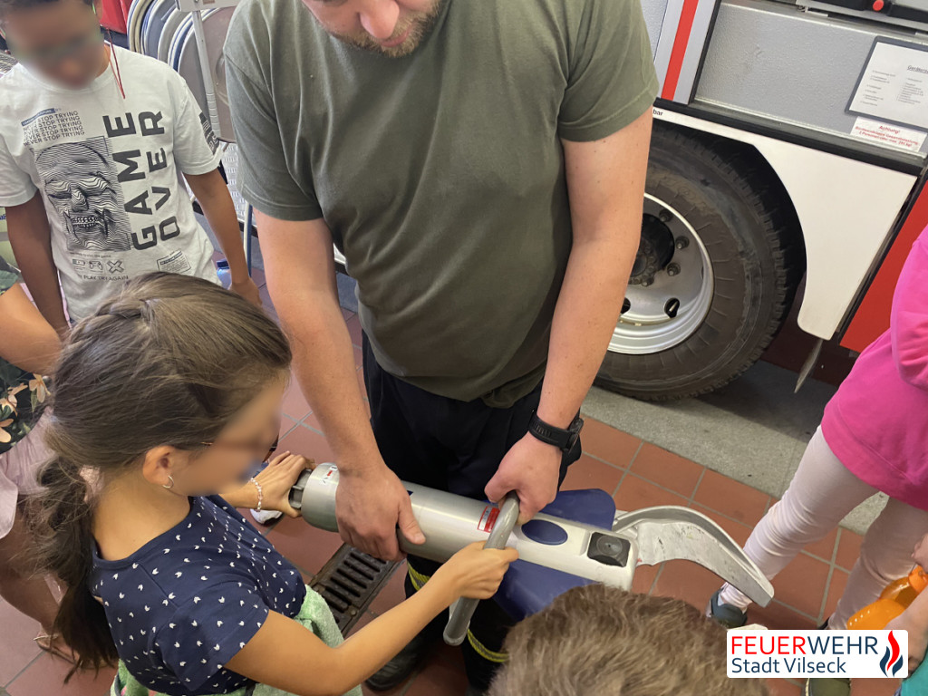Beim Besuch der Feuerwehr Vilseck konnten die Schülerinnen und Schüler der Klasse 3a der Grund- und Mittelschule Vilseck am Dienstag, dem 26.07.2022, zwei spannende Unterrichtsstunden erleben.