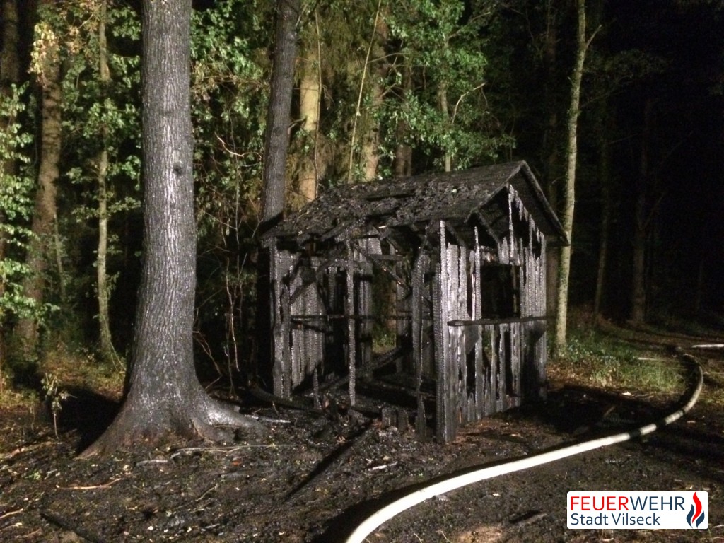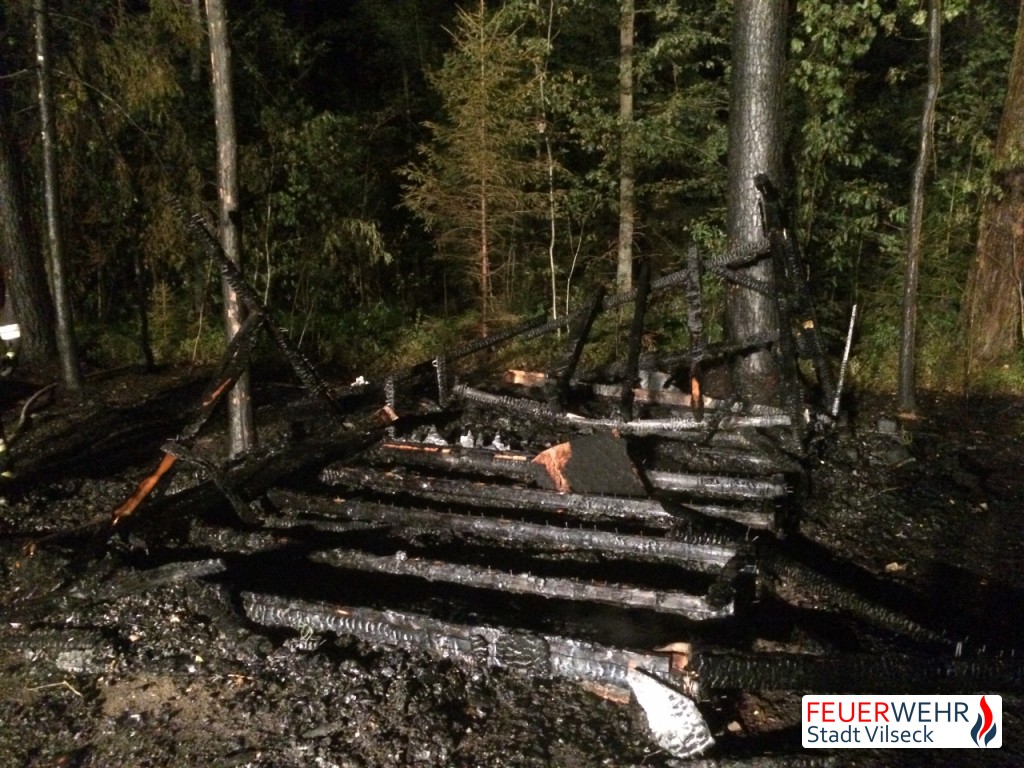 Schon auf der Anfahrt war ein heller Feuerschein aus dem betroffenen Waldstück sichtbar. Aus derzeit noch ungeklärter Ursache waren in dem Areal, auf dem jährlich die Sorghofer Waldweihnacht stattfindet, mehrere Verkaufsbuden und umliegender Wald in Brand geraten. Es brannte auf einer Fläche von ca. 100 m².