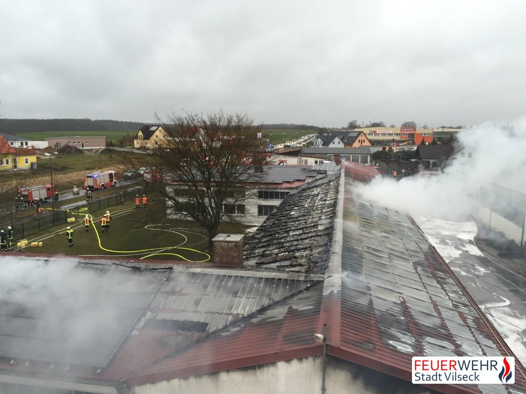 Da sich das Feuer rasch über die Dachisolierung auf der ca. 70m langen Halle ausbreiten konnte, es zu einer massiven Rauchentwicklung kam und der weitere Einsatzverlauf nicht absehbar war, wurden im weiteren Einsatzverlauf die Feuerwehren Hahnbach (Atemschutz), Sulzbach (Drehleiter) , Amberg (AB- Atemschutz) und die Werkfeuerwehr der US Army (Drehleiter) nachalarmiert.