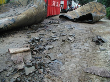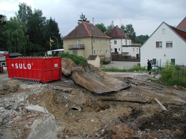 In Absprache mit diesen beiden Behörden entschloß man sich das Erdreich abtragen und von einer Spezialfirma entsorgt zu lassen. Die aufgeschnittenen Tankhälften wurden provisorisch umgelagert, um ein weiteres Austreten der Ölreste zu verhindern.