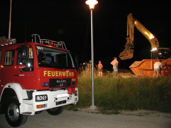 Die Arbeiten konnten jedoch nicht bis zum Schluß begleitet werden, da die FF Vilseck um 23:02 zu einem weiteren Einsatz alarmiert wurde.