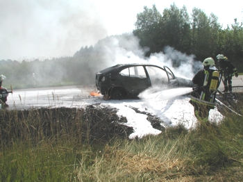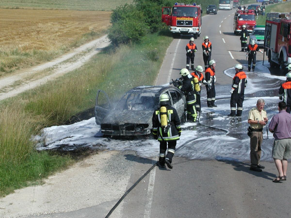 lag, stand das Fahrzeug bereits im Vollbrand, Personen befanden sich nicht mehr