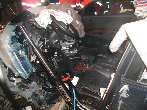 Fußraum des Fahrzeugs mit Hilfe von zwei Rettungszylindern