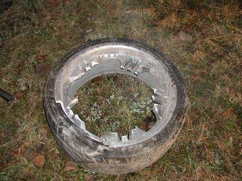 (Gebrochene Felge - durch die Wucht des Aufpralls)