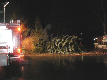 der Strom aus. Bäume die auf Überlandleitungen gefallen sind und diese