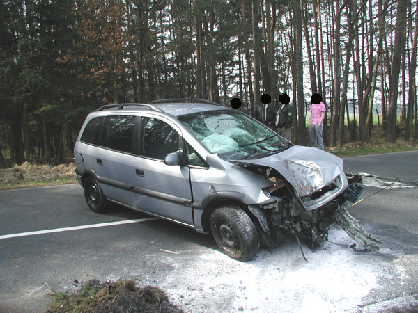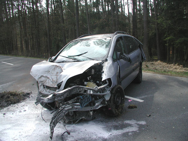 einem Waldstück links von der Fahrbahn abgekommen und frontal gegen einen