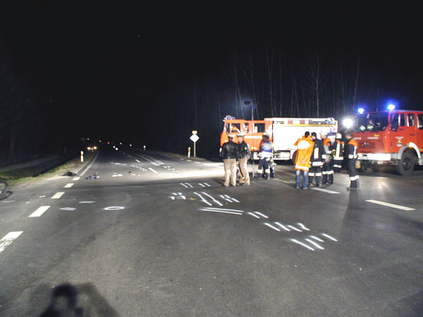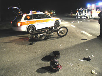 zwei Motorrädern, wobei drei Personen zunächst schwer verletzt wurden.