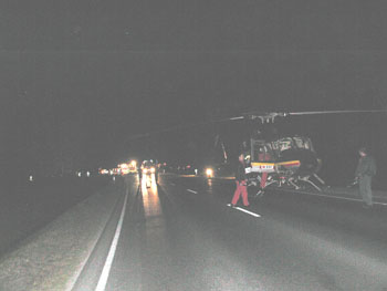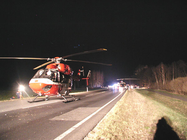 Aufgrund der Schwere der Verletzungen wurden vom BRK zwei Rettungshubschrauber an die Einsatzstelle beordert. Da die FF Freihung bereits mit dem Ausleuchten der Unfallstelle gebunden war, wurde die FF Vilseck zur Unterstützung nachalarmiert, um einen Landeplatz vorzubereiten und auszuleuchten.
