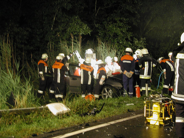 Da die Beifahrerin des Schweizer PKW nicht allzu schwer eingeklemmt war, konnte sie bereits nach dem Öffnen der Beifahrertür aus dem Fahrzeug gerettet werden und dem BRK übergeben werden. Die Rettung des Fahrers gestaltete sich hingegen etwas schwieriger.