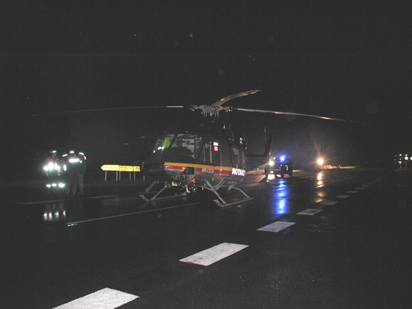 Da der Patient aufgrund seiner Verletzungen in ein weiter entferntes Krankenhaus verbracht werden musste, beorderte das BRK zusätzlich noch einen Rettungshubschrauber an die Einsatzstelle, für welchen die FF Vilseck gemeinsam mit den Feuerwehren Schlicht und Adlholz einen Landeplatz ausleuchtete.