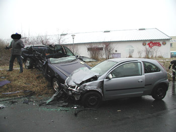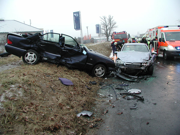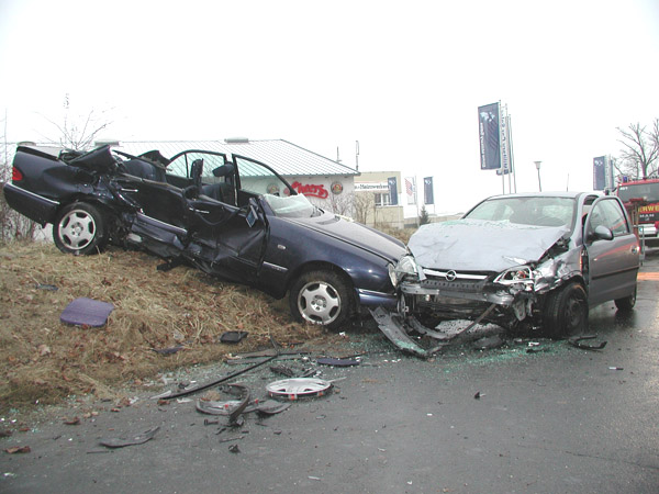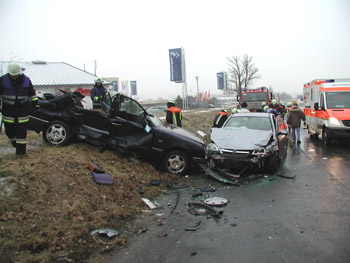 Kurz nach dem Ortsende war es zu einer Kollision zwischen zwei PKWs gekommen.