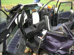 Nach Rücksprache mit dem Notarzt wurde die Patientenorientierte Rettung des Fahrers vorbereitet. Nachdem der Patient durch den Notarzt stabilisiert war, wurde mittels hydraulischem Rettungsgerät das Dach des Unfallfahrzeugs entfernt, um den Patienten achsengerecht aus dem Fahrzeug befreien zu können.