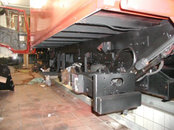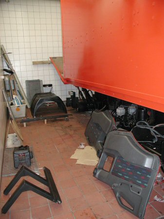 die restlichen Arbeiten zu erledigen hatte. Dort wurde der Lastwagen aufgebockt