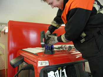Die nächsten Schritte waren jetzt: Blaulichter montieren, Presslufthörner
