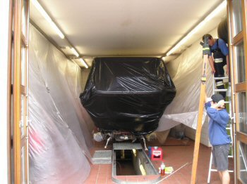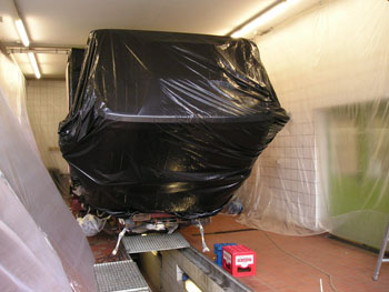 komplette Fahrzeug wurden mit Folie abgeklebt um die Karosserie abzuschleifen
