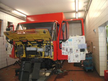 Nach weiteren kleineren Ausbauten im Fahrerhaus, wie z.B. die Halterung für